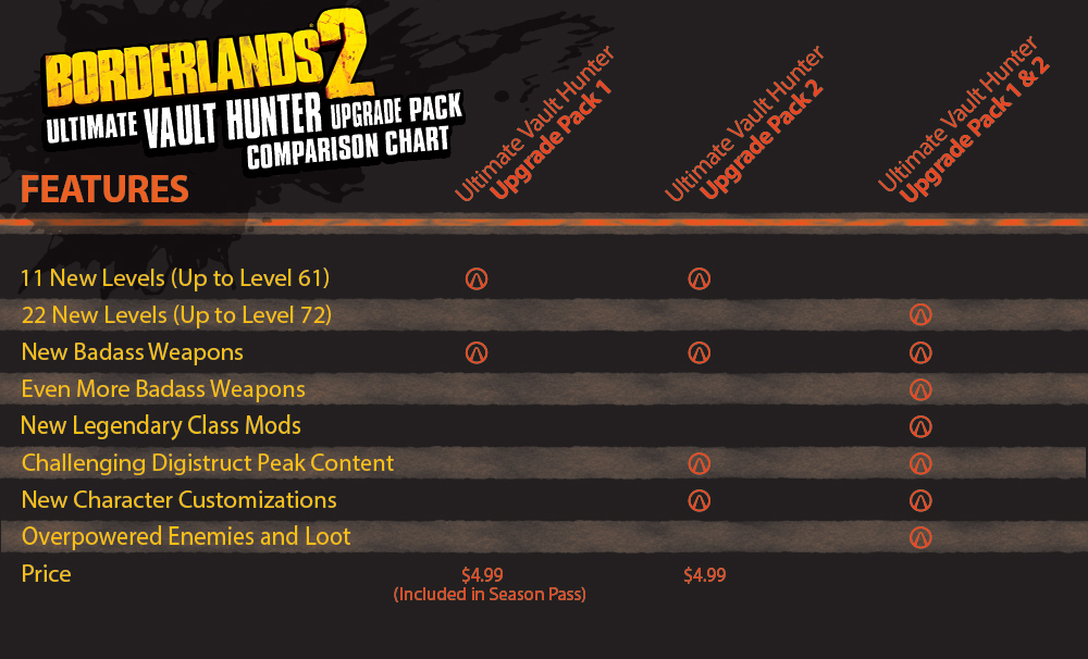 Today, 2K and Gearbox Software announced new downloadable content for Borderlands 2. The Ultimate Vault Hunter Upgrade Pack 2: Digistruct Peak Challenge is now available on all platforms worldwide for $4.99, and includes a new level cap, more legendary gear and the new “Raid on Digistruct Peak” map. Additionally, new heads and skins for each Vault Hunter are now available for only $0.99 each.